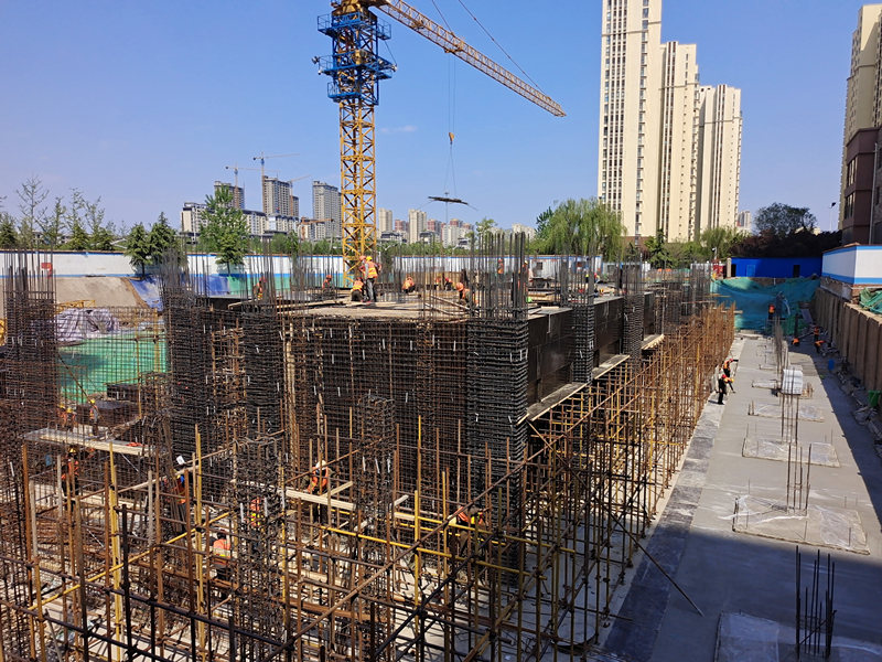 舒格蘭24#樓 負一層墻柱鋼筋綁扎、頂板支設推進中